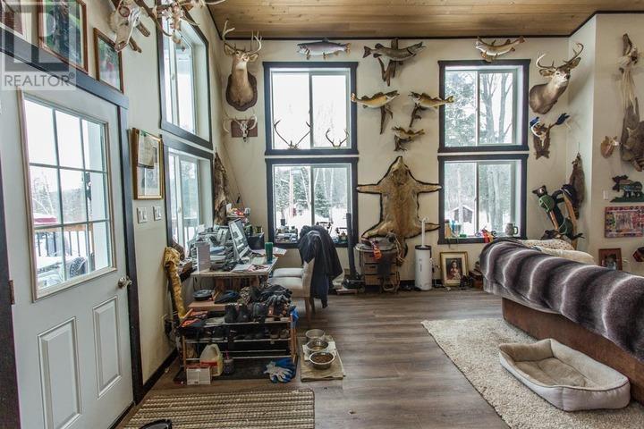 This exceptional Milford Haven property offers a rare blend of character, versatility, and water access. The main home features three bedrooms plus a stunning open loft currently utilized as the primary suite. The loft overlooks the bright vaulted living area, creating an airy and connected living space. Step from the primary loft onto a private balcony with views over the grounds and beyond. Across the road lies shared, private-ownership access to the Kaskewan River with sheltered access leading directly to the open waters of Lake Huron. A large new-build garage and living complex adds four bedrooms, two bathrooms, and two kitchens. Includes two garage/workshop bays plus a 12 x 16 overhead door to a flexible multipurpose space. Additional buildings include a sauna, well house, and insulated bunkie/additional garage. Ideal for extended family, guests, hobbyists, or income potential. A truly unique opportunity offering space, privacy, and access to Northern Ontario's finest waters. Information Package with much more detailed information and floor plans available. (id:15477)